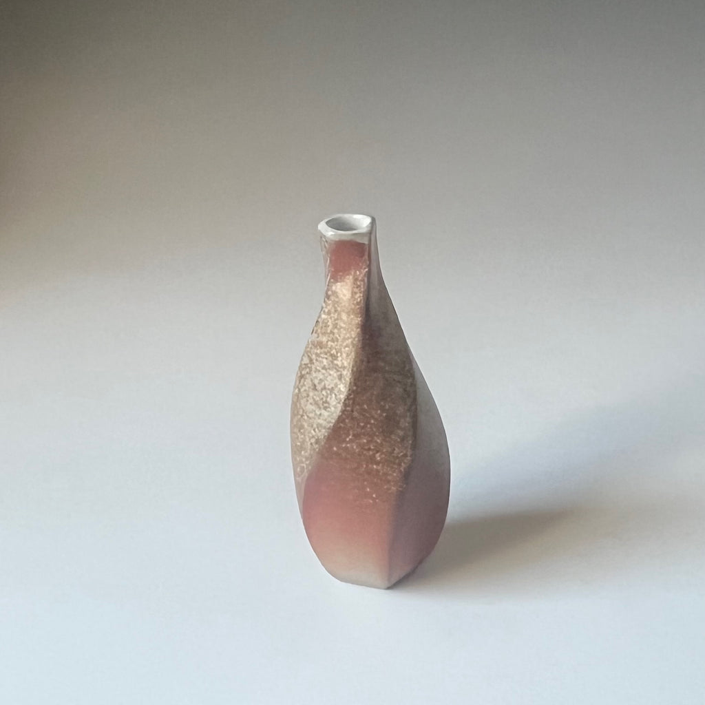 A small woodfired "twisted" vase .  For one or a few medium size flowers.
